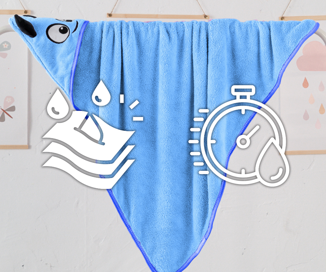 La toalla con capucha y, como extra, una toallita de 25x25 cm muy práctica para secar la carita o llevar en el bolso.